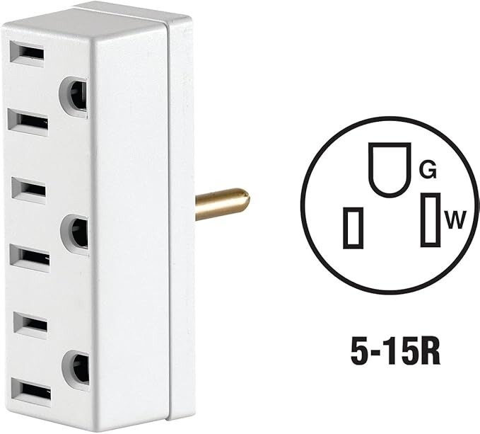 - Converts one standard outlet into three NEMA 1-15R non-grounded receptacles