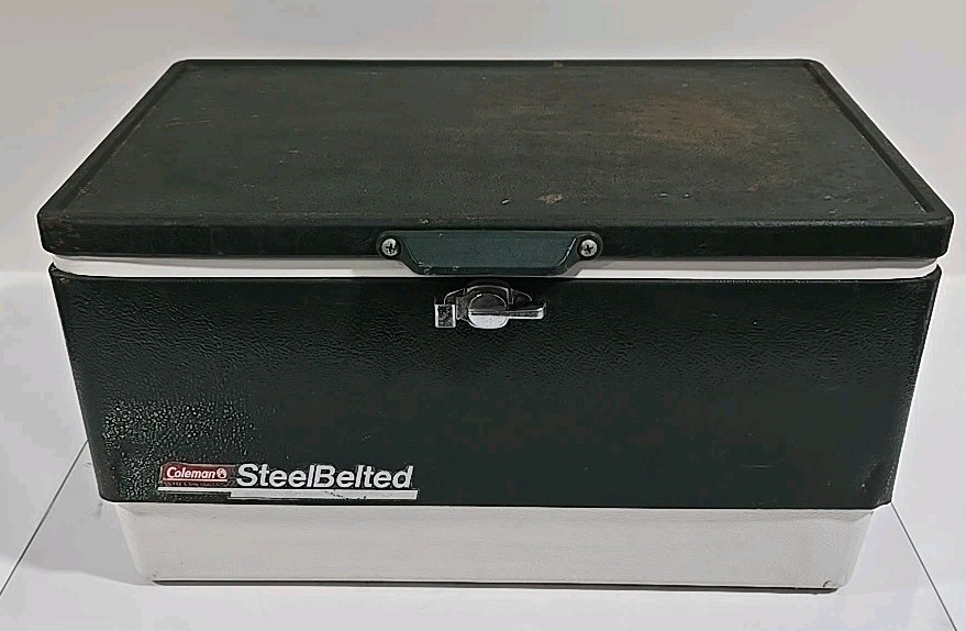 Vintage Coleman SteelBelted Metal Green White Cooler Ice Chest