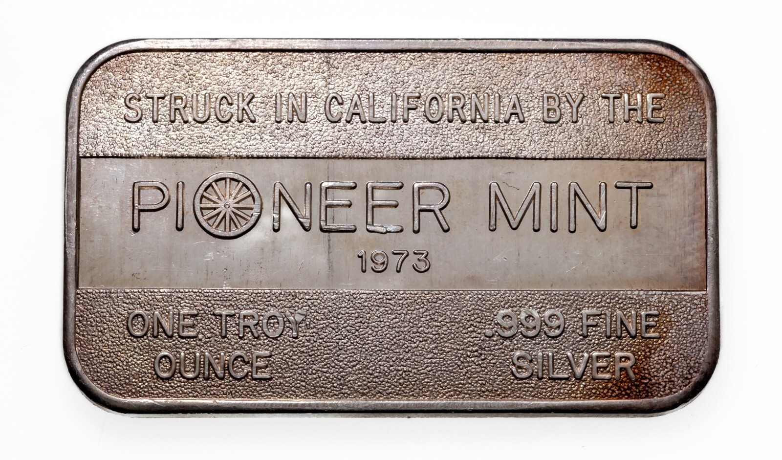 Reverse: PIONEER MINT 1973 "STRUCK IN CALIFORNIA"