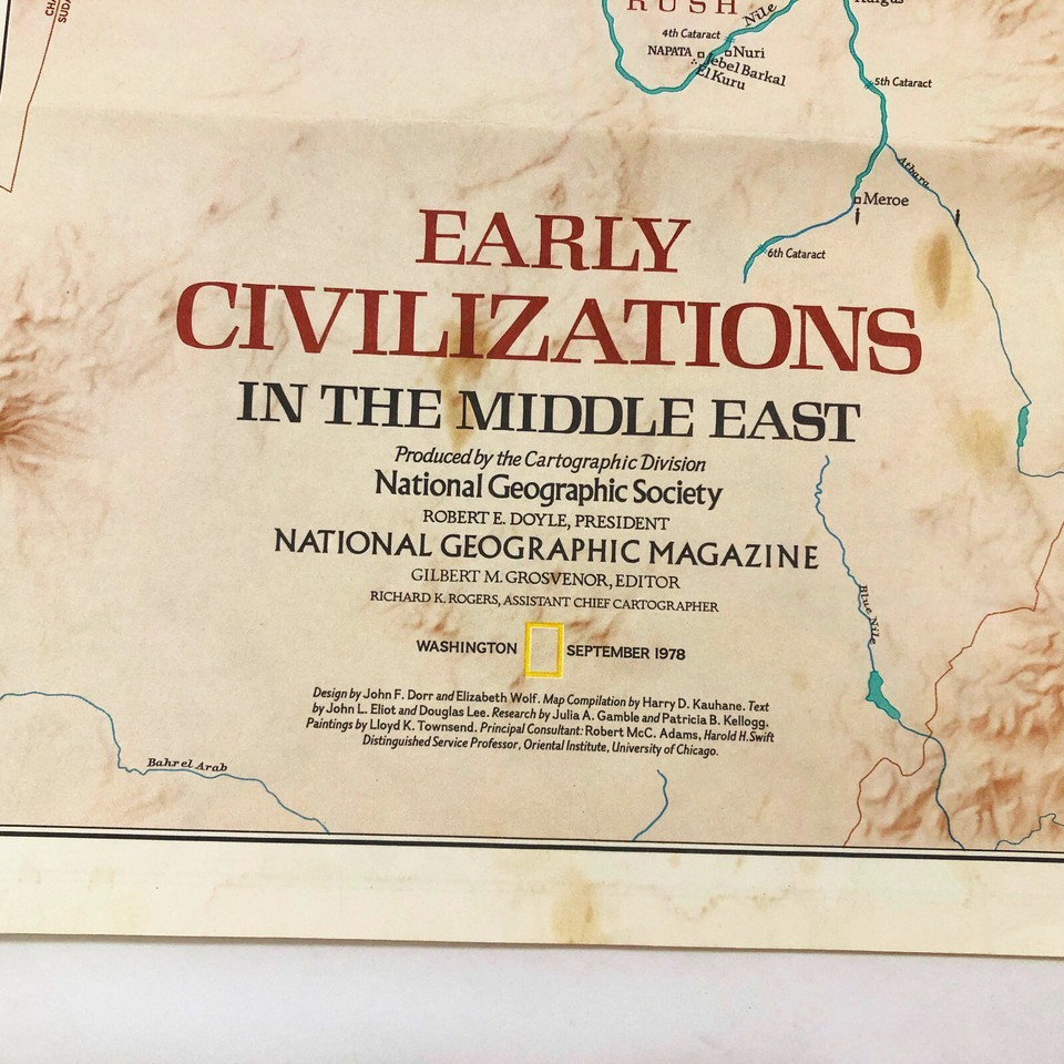 Vintage National Geographic map of the middle east with "the Tribes of Civilization" growth of an empire on the back side.