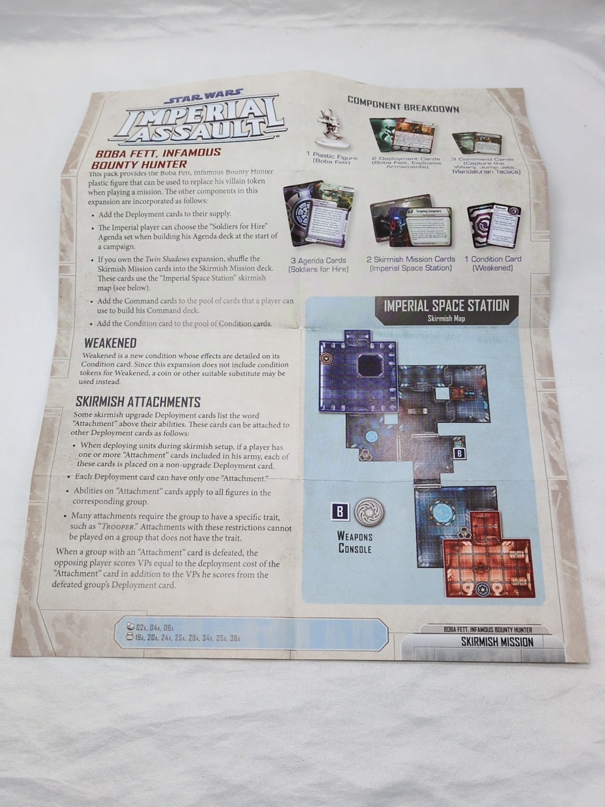 (3) Star Wars Imperial Assault Boba Fett Villain Pack Cards + Sheet