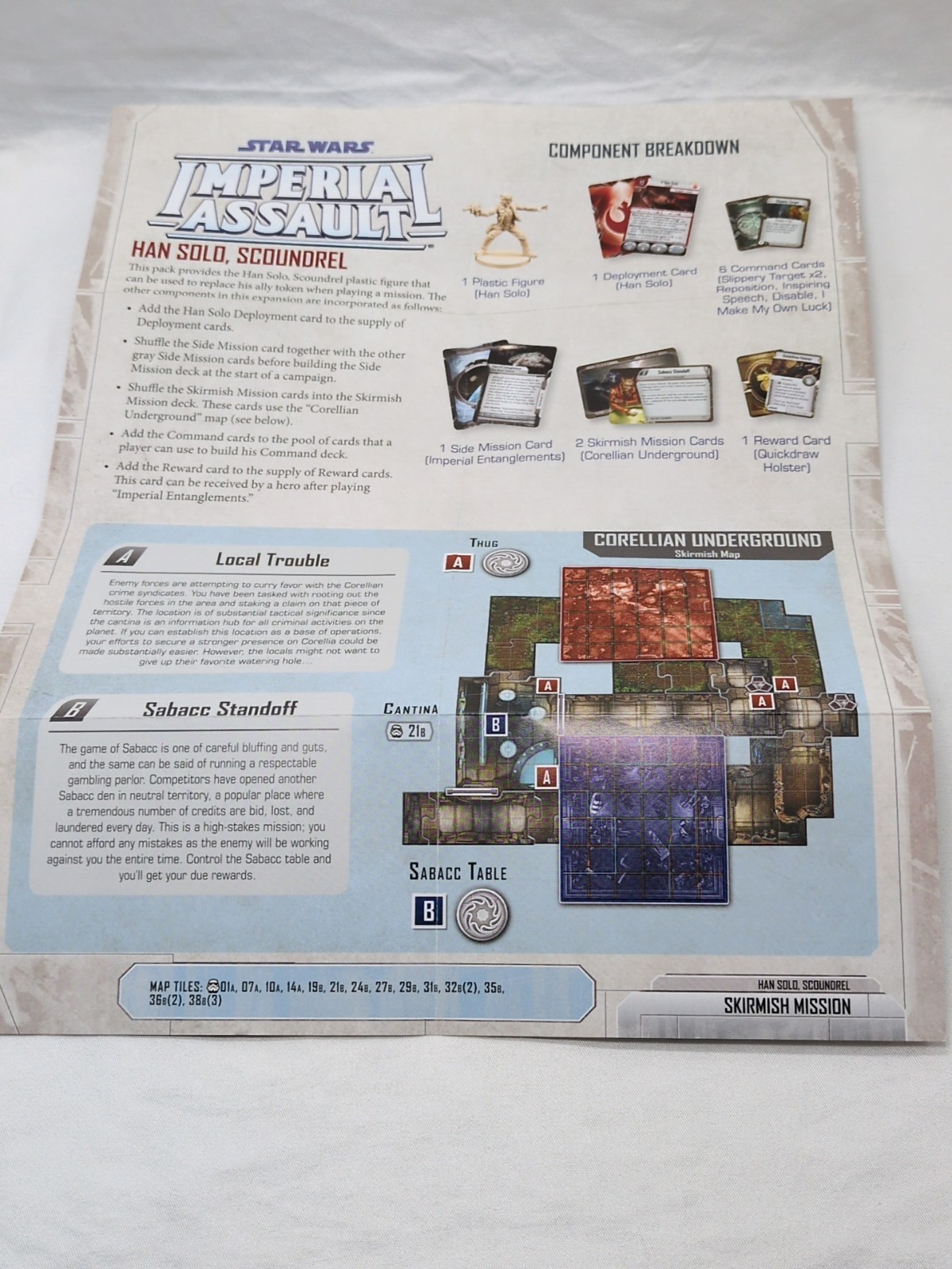 (3) Star Wars Imperial Assault Han Solo Scoundrel Ally Pack Cards + Sheet