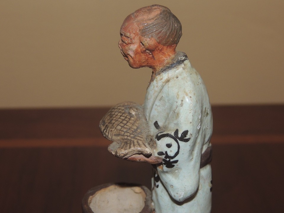 ONE MUD MAN, UNMARKED, BUT THE STYLE STRONGLY SUGGESTS IT IS FROM JAPAN. I AM NOT AN ANTIQUITIES EXPERT - PLEASE LOOK AT THE PICTURES CAREFULLY.