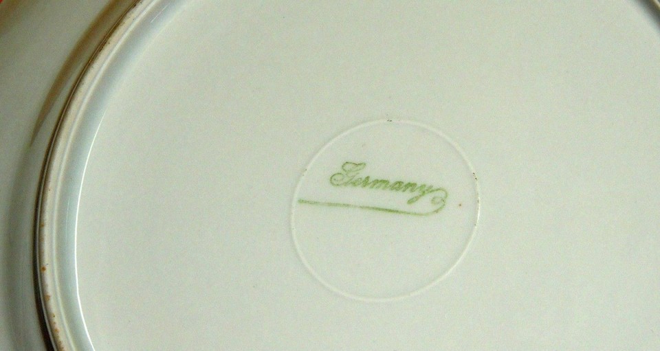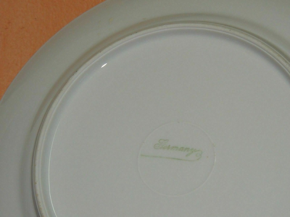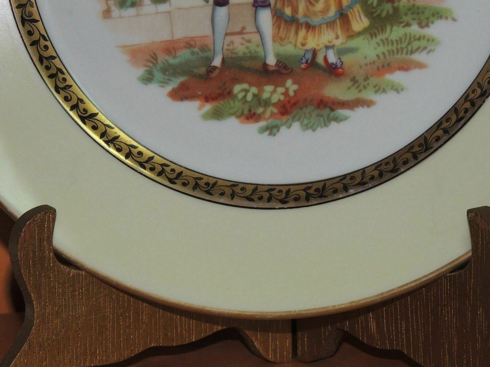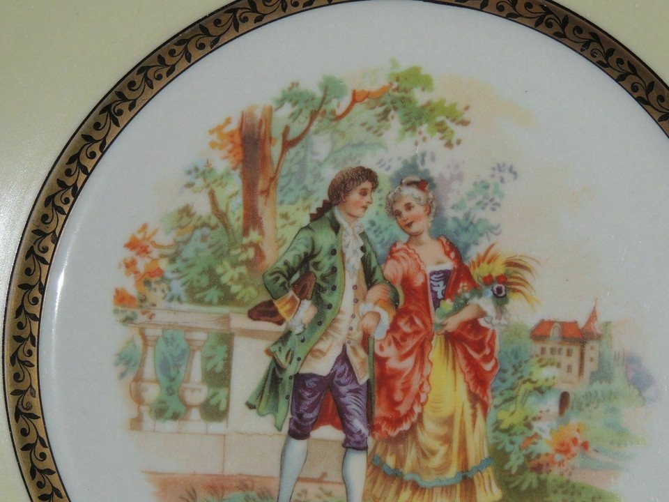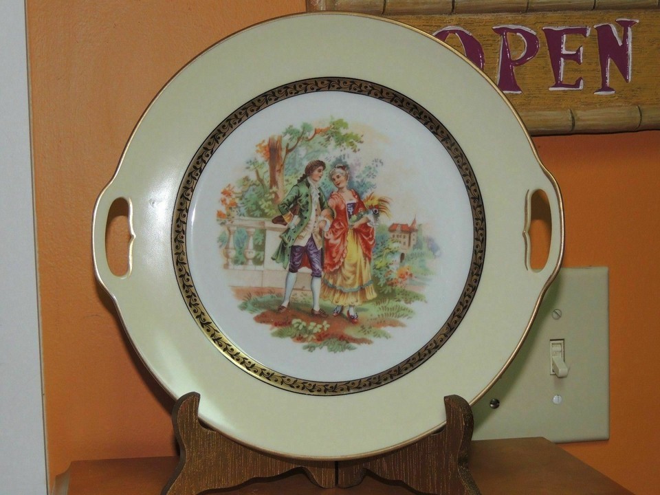 Handled Decorative Plate 9.5" Rococo style Man & Woman marked Germany cursive