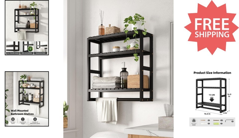 Stylish Wall-Mounted 3-Tier Bamboo Bathroom and similar items