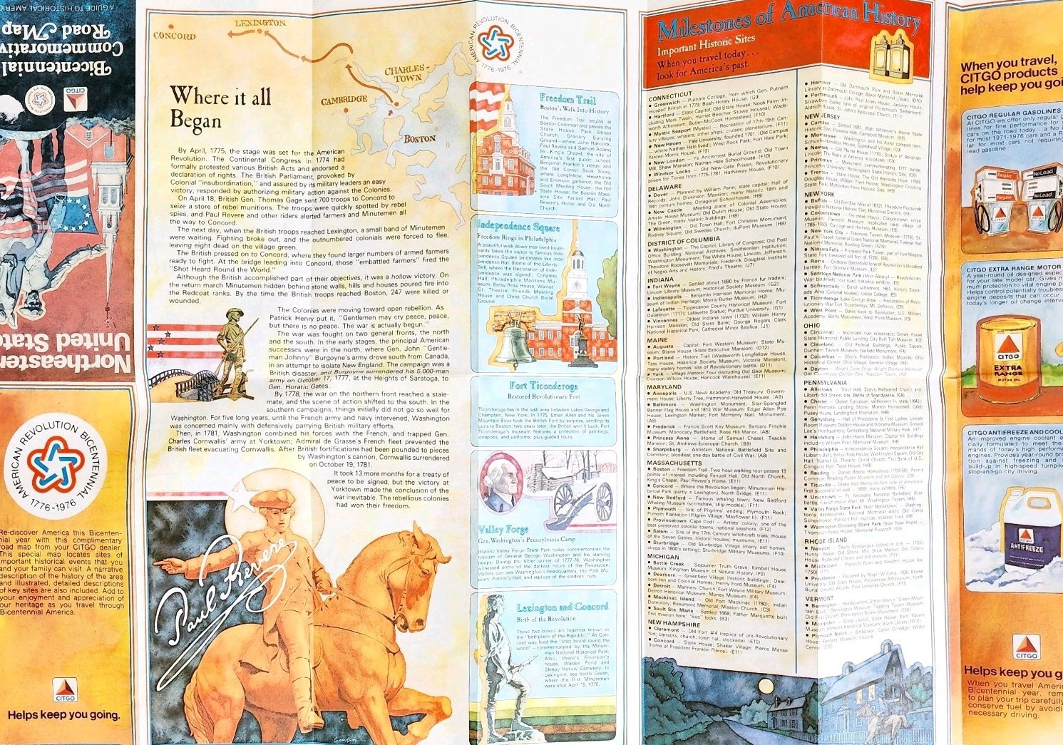 1976 Citgo Road Map Bicentennial Eastern US American Revolution Vintage 3 DWF10