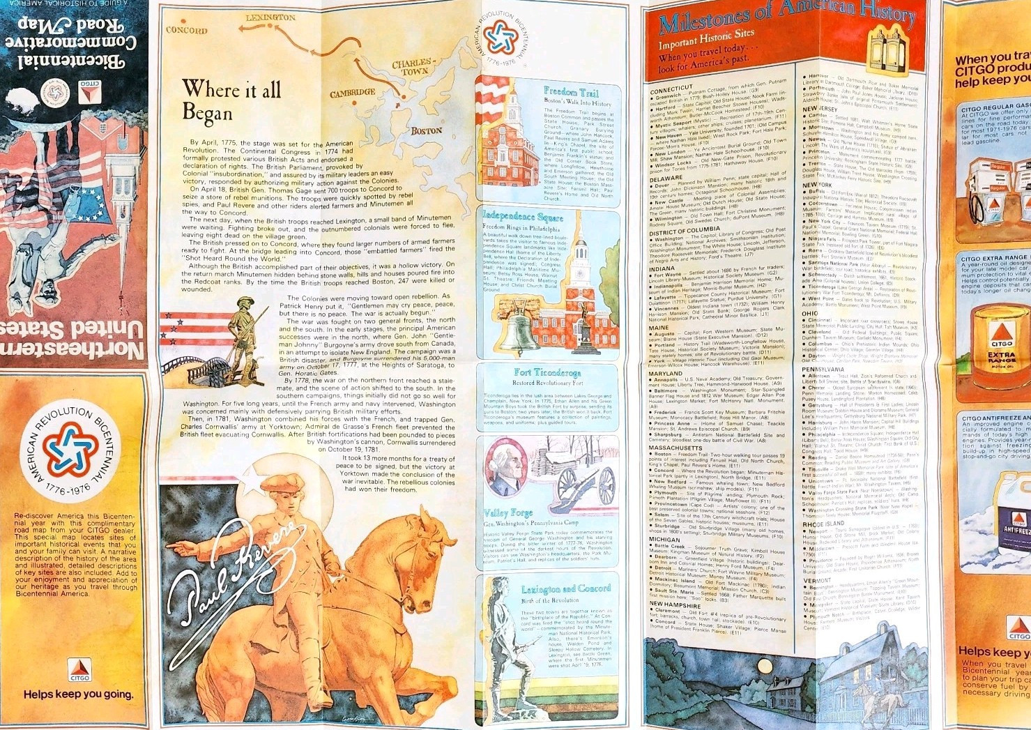 1976 Citgo Road Map Bicentennial Eastern US American Revolution Vintage 21 DWF10