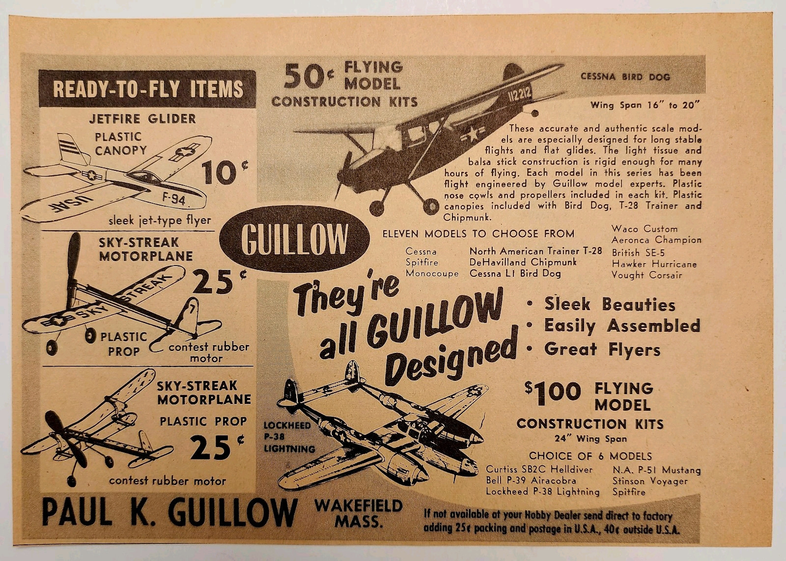 1974 Paul K Guillow Airplane Model Supply Advertisement Aviation Kits DWQQ13