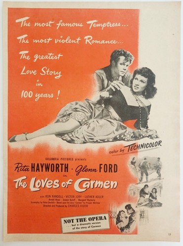 The Loves Of Carmen Movie Film 1948 Advertisement Rita Hayworth Cinema DWNN14