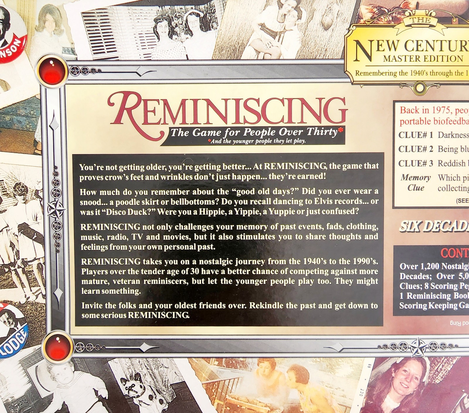 1998 Reminiscing Game For People Over 30 Vintage Complete Party Trivia GstRm
