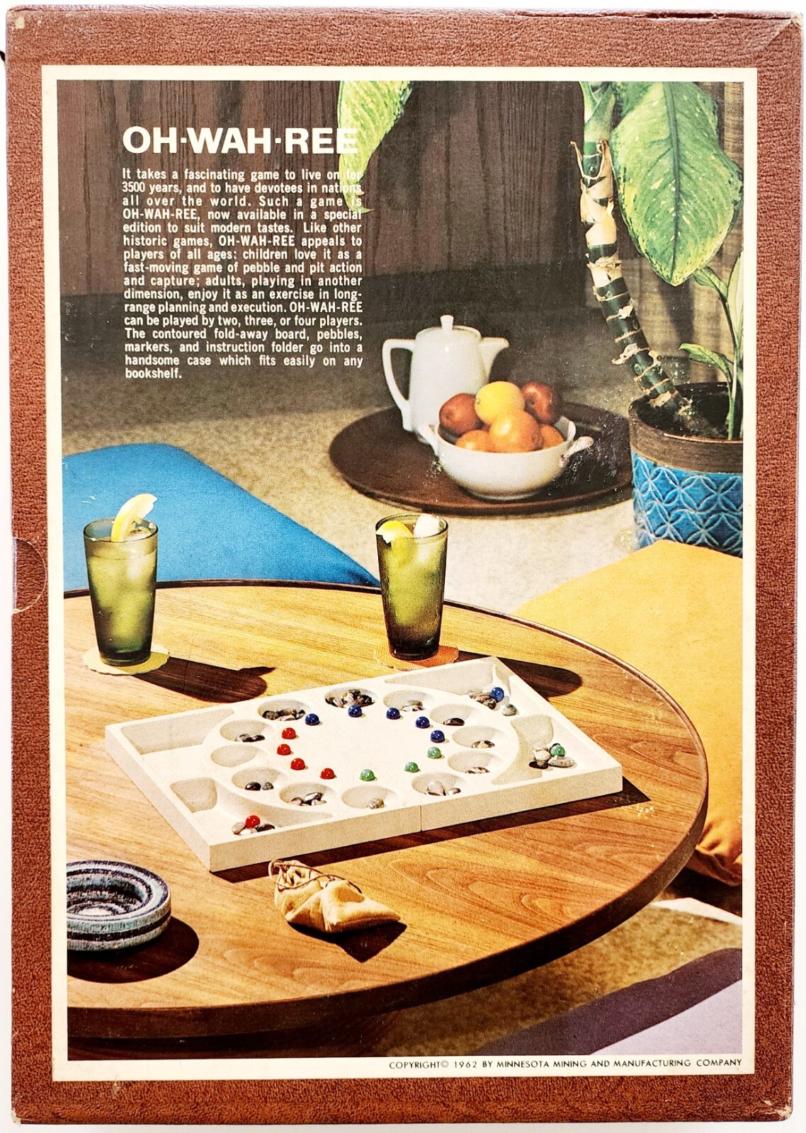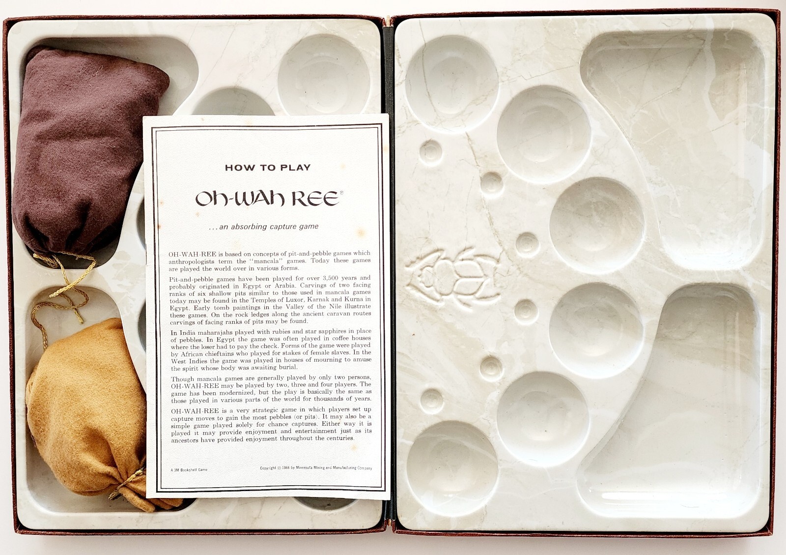 1962 Oh Wah Ree Mancala Style Pit and Stones Game 3M Vintage Complete GstRm