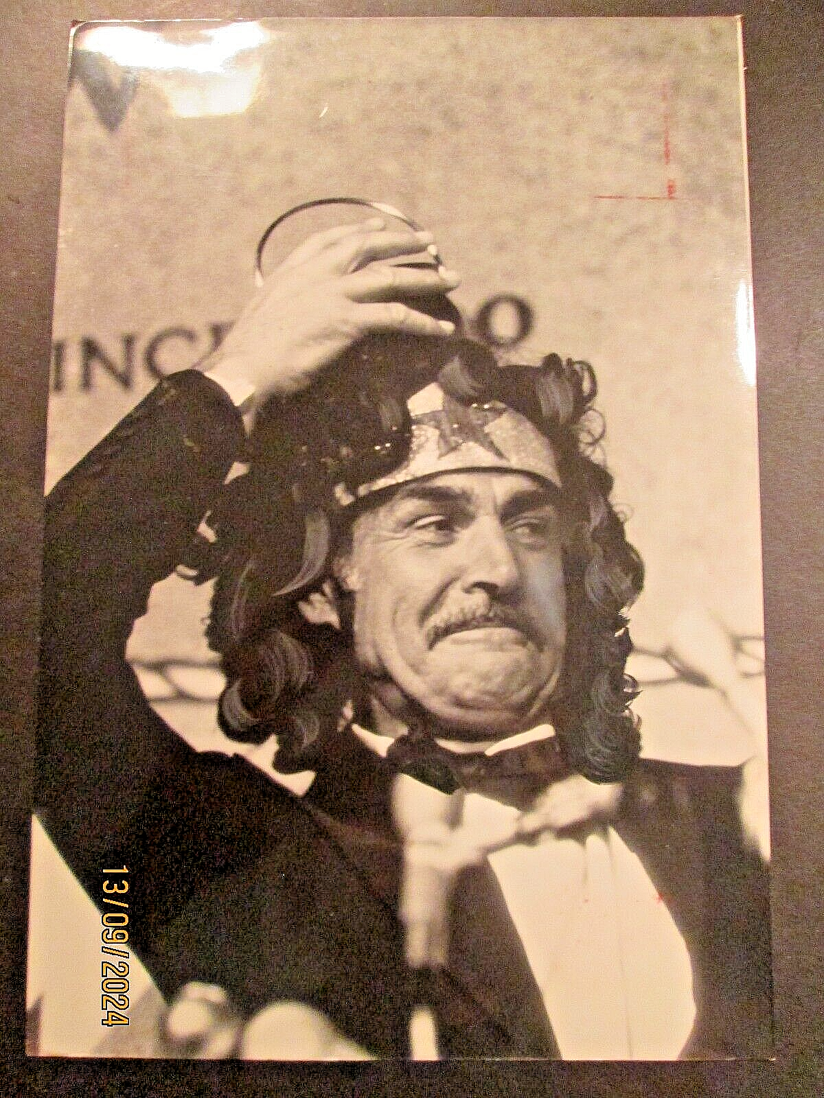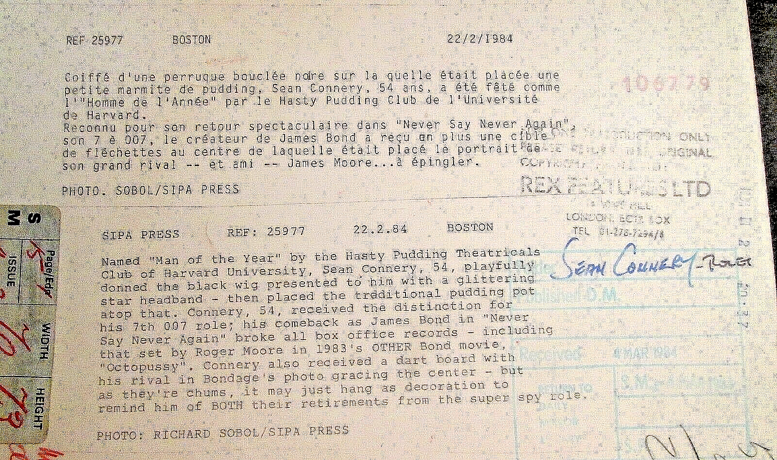 SEAN CONNERY: ( ORIG,ON THE SET CANDID VINTAGE RARE PHOTO) CLASSIC CONNERY (ORIG,CANDID CONNERY AT THE HASTY PUTTING AWARDS HAVING FUN) THIS STILL IS A BIT TALLER AND LARGER THAN 8X10 WITH INFO ON BACK OF PHOTO