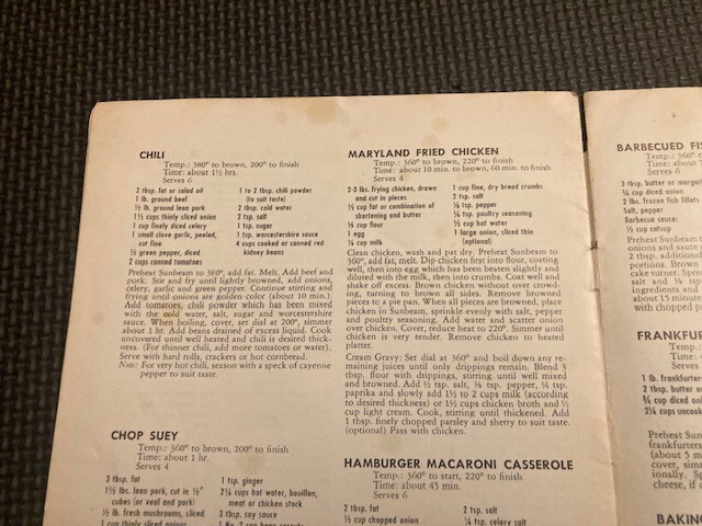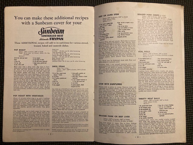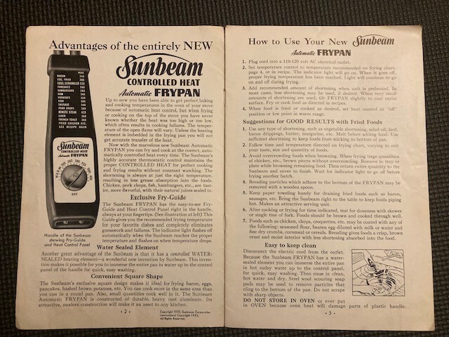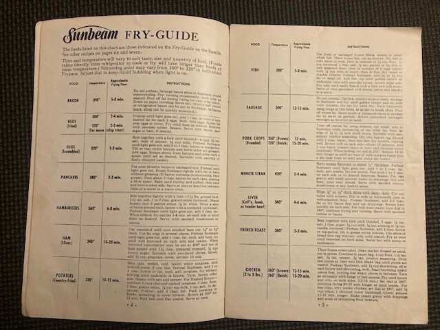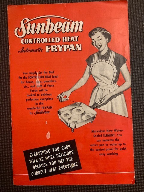 Vintage 1953 Sunbeam Controlled Heat Automatic Frypan Owner's Manual w/ Recipes