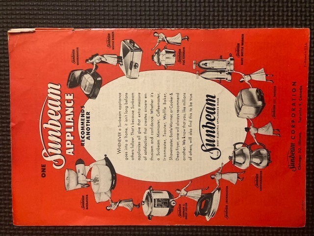Vintage 1953 Sunbeam Controlled Heat Automatic Frypan Owner's Manual w/ Recipes Overall good. Some smudges inside. Small tear on top of spine. Please refer to images.