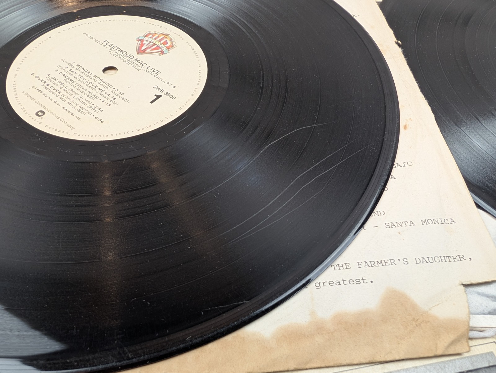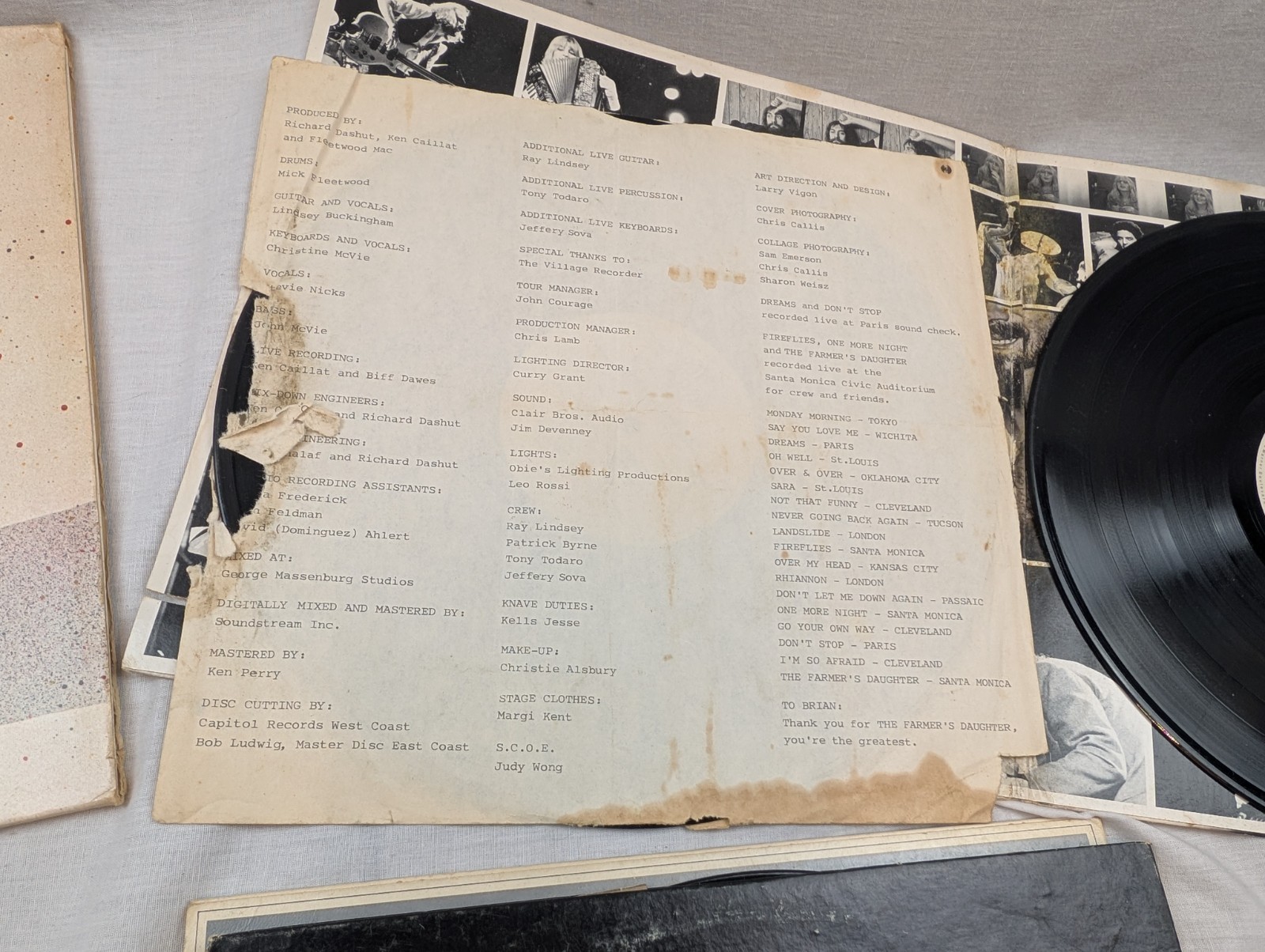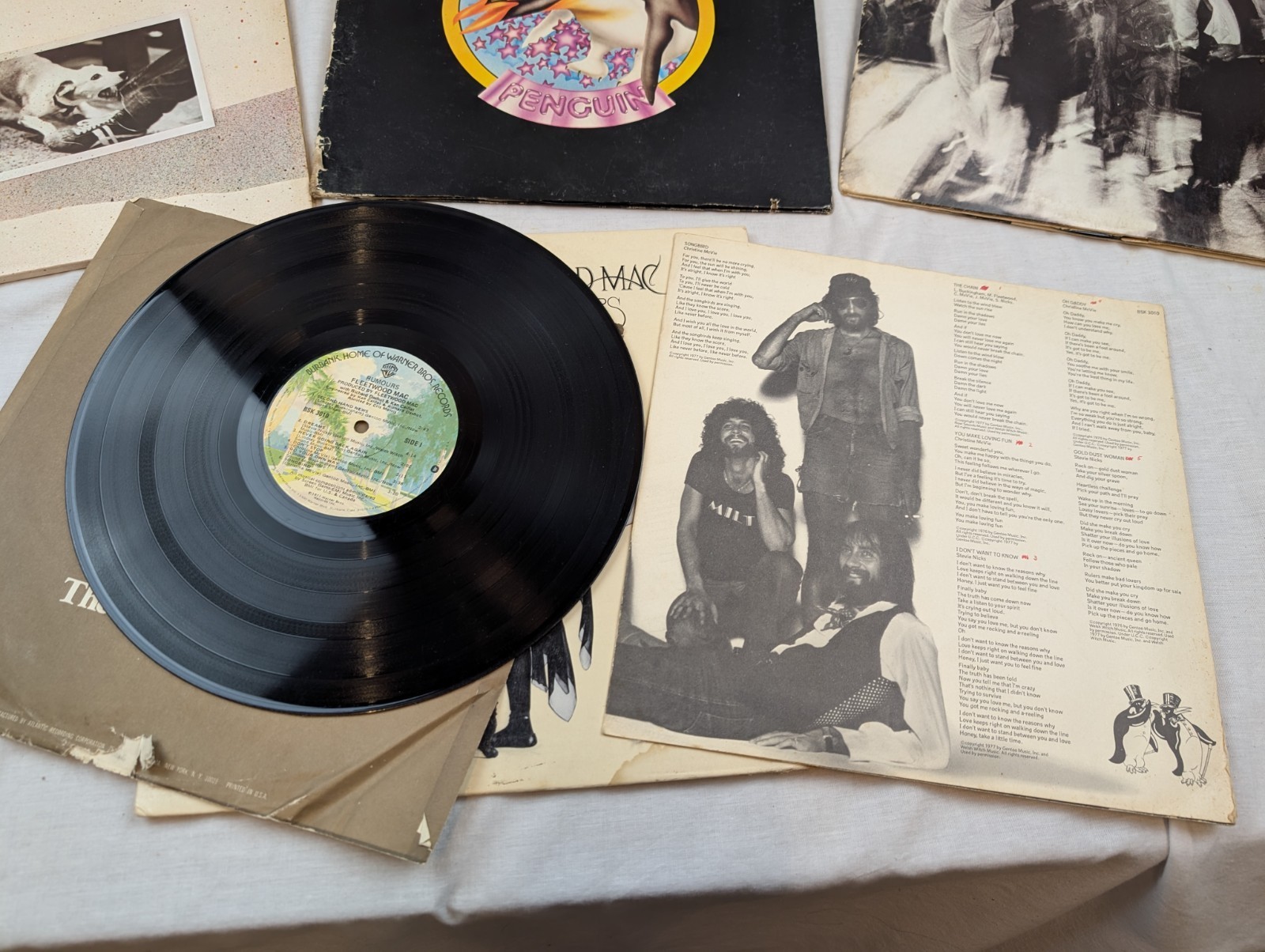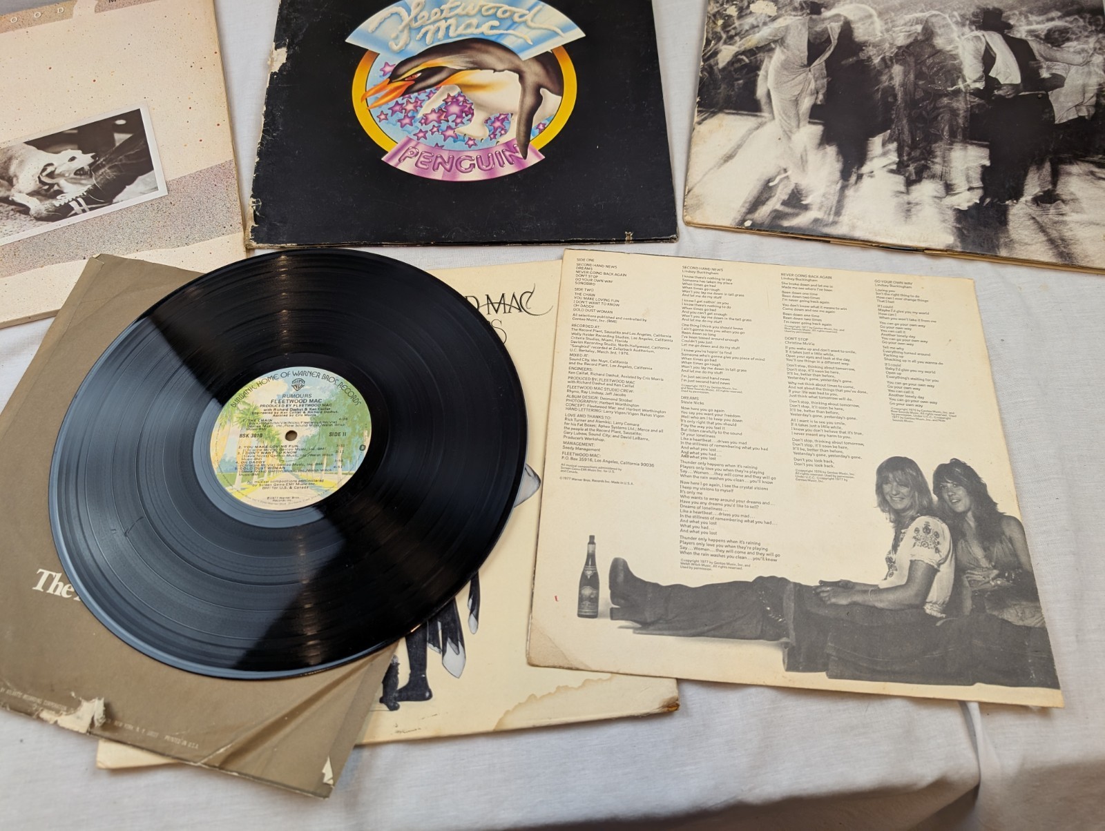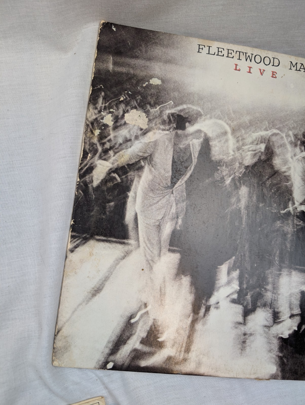 The Rumours, Penguin and Live covers have damage and are in fair condition -- see pics. Tusk cover is in VG+ condition. I cleaned all the records with my Spin Clean and play tested all the records (on an admittedly cheap turntable)