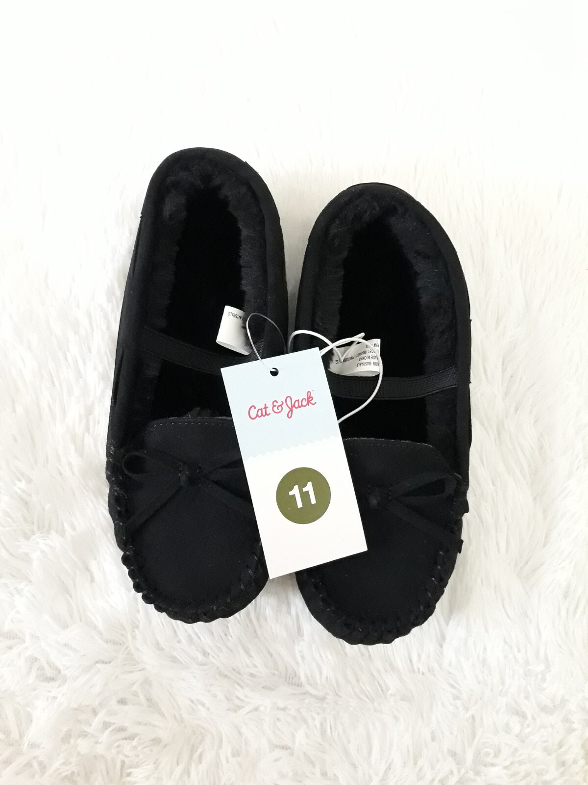 Toddler Girls' Celina Moccasin Slippers ~ Cat & Jack (Size 11) BLACK ~ NEW!!!