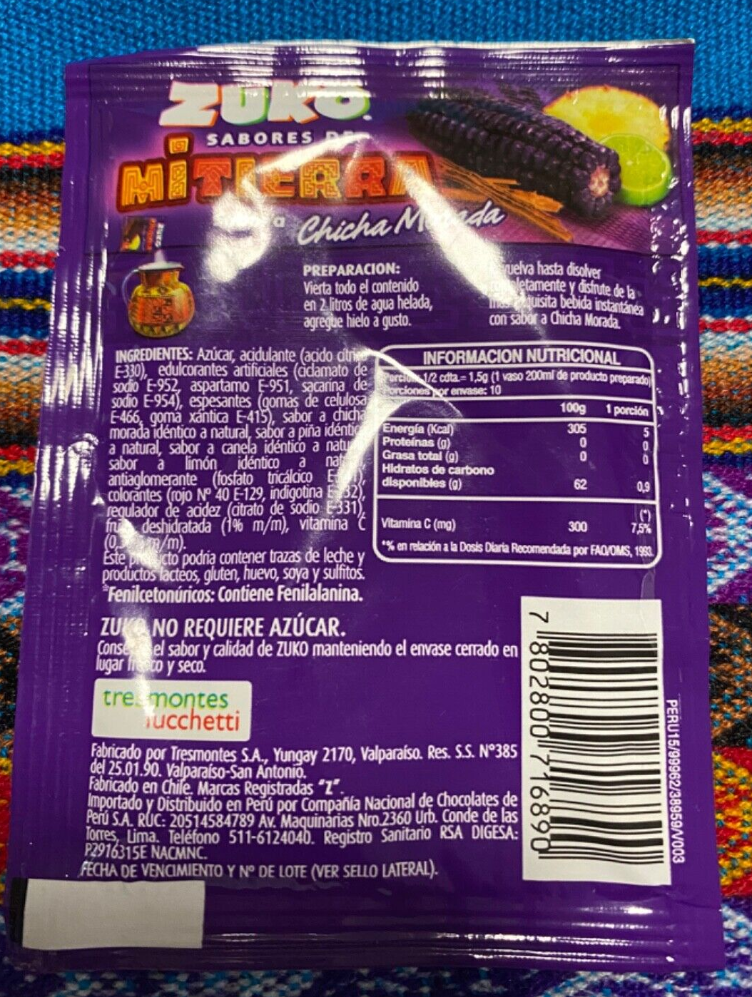 Zuko 4 Pack Chicha Morada With Vitamin C Peruvian Drink 15gr each