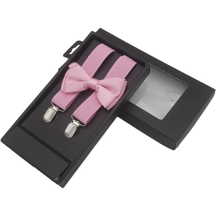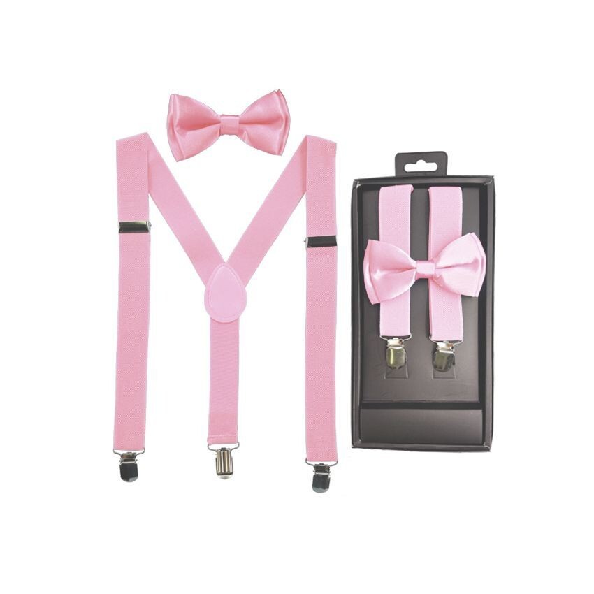 Elastic & Adjustable Suspender & Bow Tie Set for Boys Girls Children -Light Pink