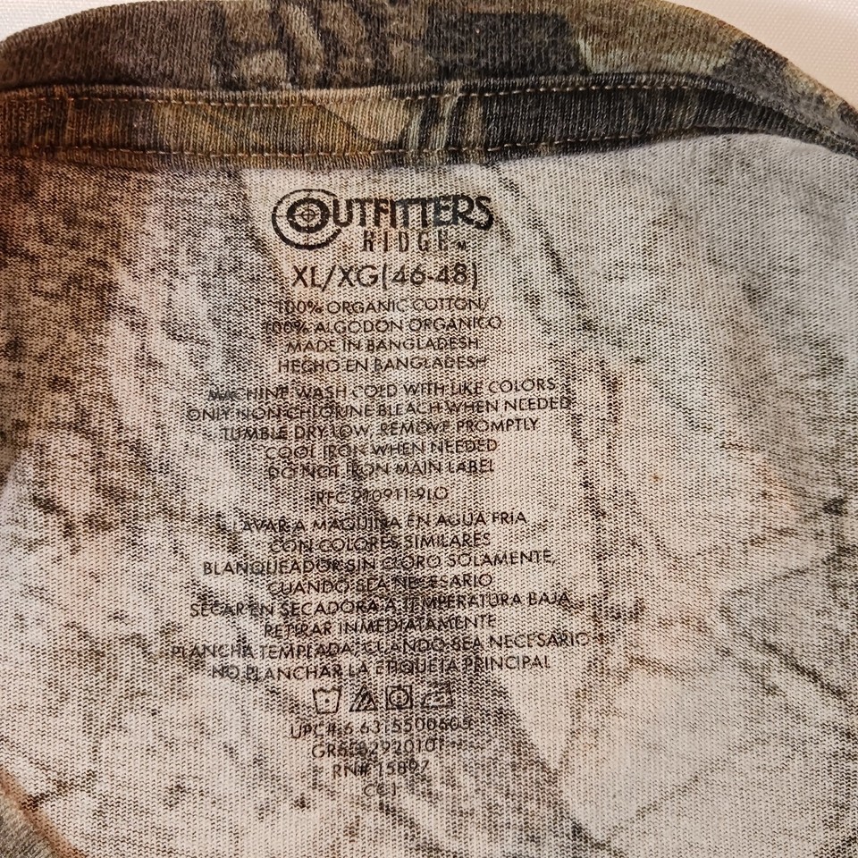 This Outfitters Ridge men's tee shirt is the perfect addition to any hunting or outdoor enthusiast's wardrobe. The shirt features a camouflage pattern, long sleeves, and a comfortable XL size. Made of 100% cotton, this shirt is durable and perfect for any outdoor activity. The shirt is designed with a pocket for added convenience and style. It is suitable for men and made in Bangladesh.