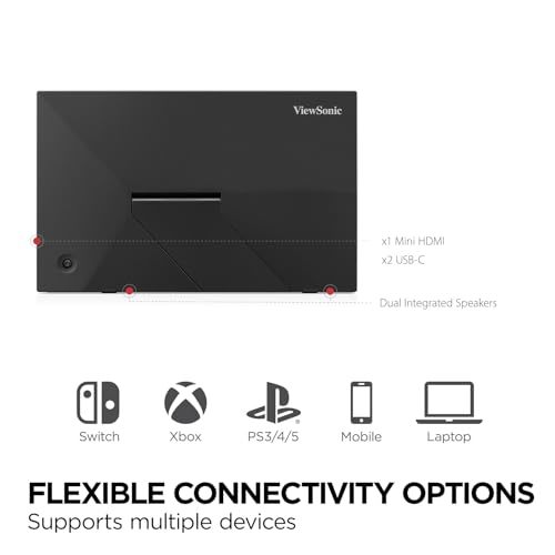 ViewSonic TD1655 15.6 Inch 1080p Portable Monitor with IPS Touchscreen, 2 Way Po