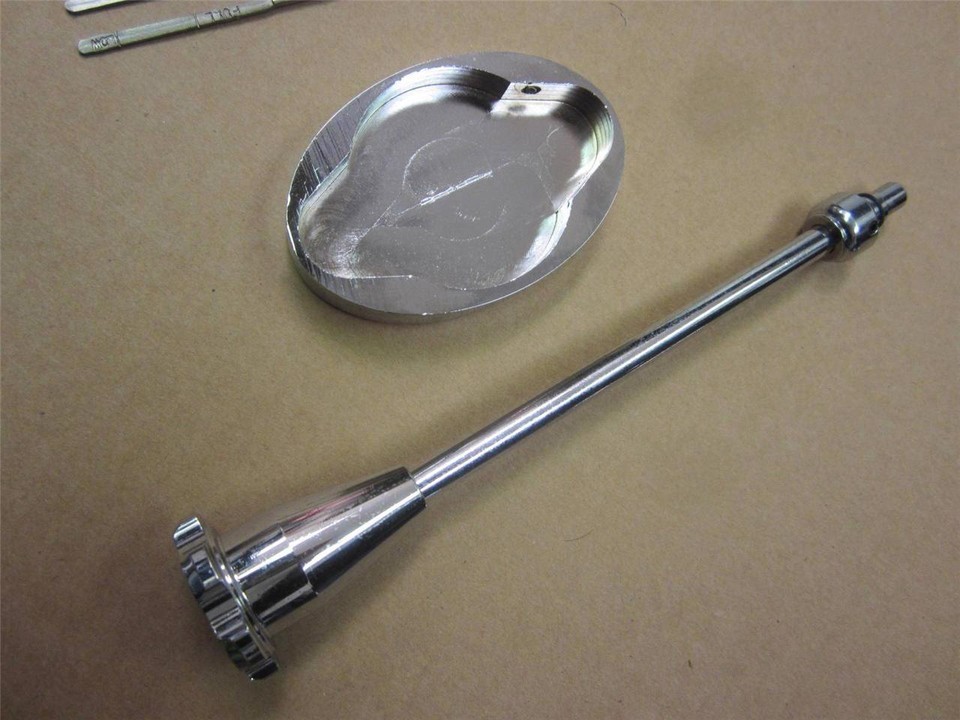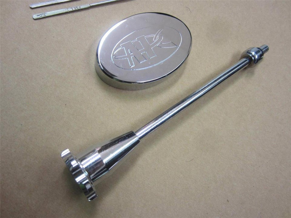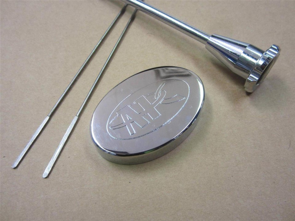 All of the pieces are chromed aluminum. The dipstick has the 3A logo on the top (it is removable if you don't like it there).