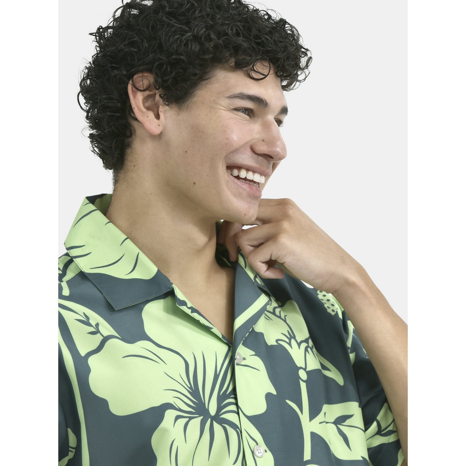 No Boundaries Men's Button Front Oversized Cabana Shirt Green Size S (34-36)