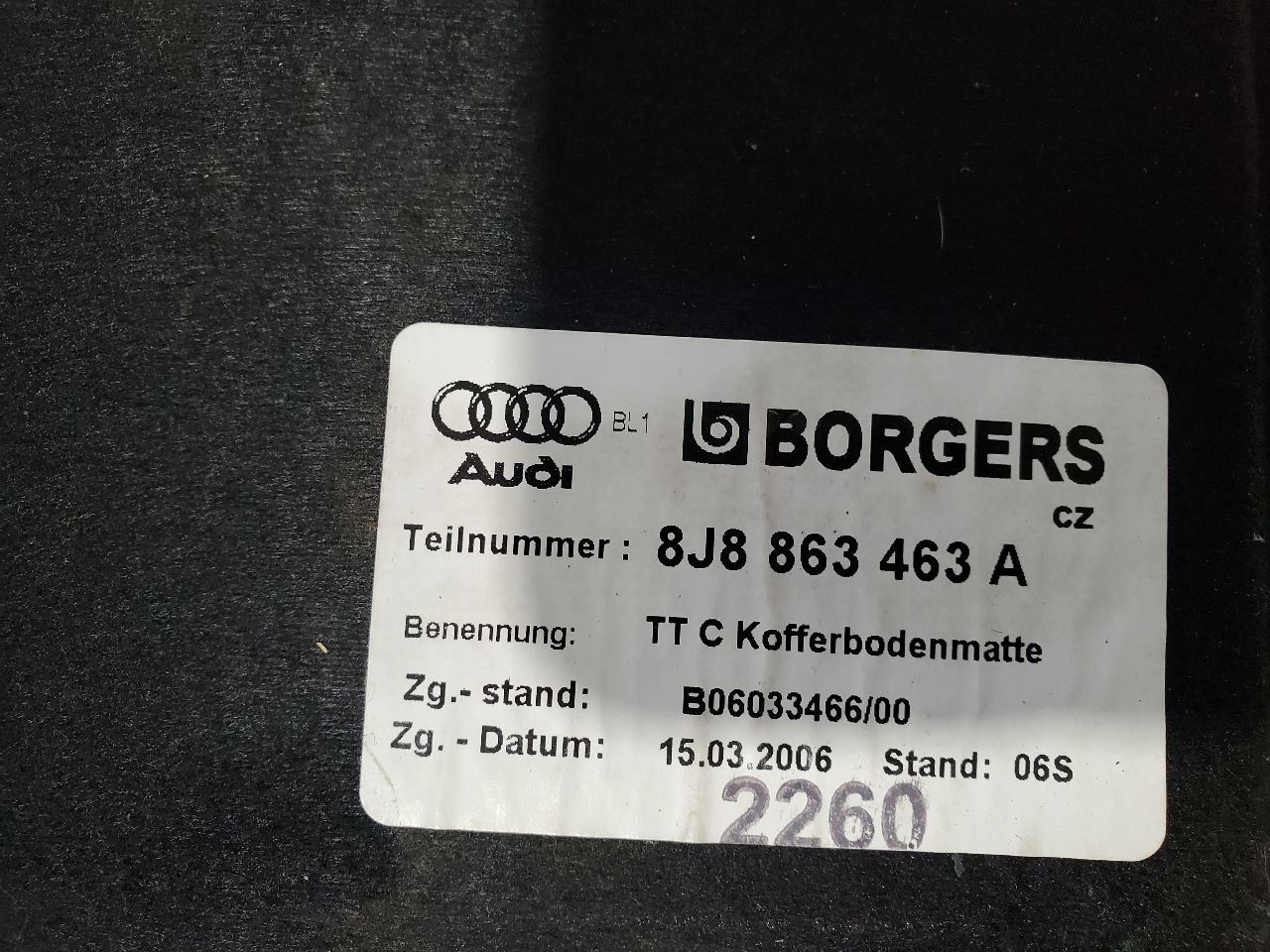 2014 Audi TT OEM Cargo Cover Trunk Floor Cover |
