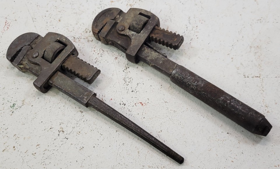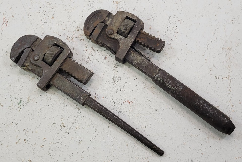 *PV30) Vintage Pair of 2 Tools Steel Adjustable Jaw Pipe Wrench 10