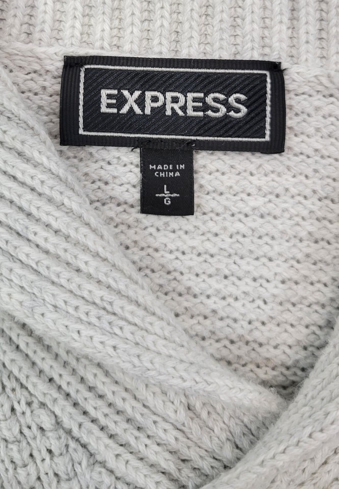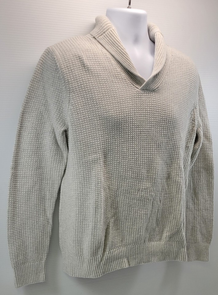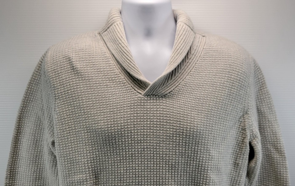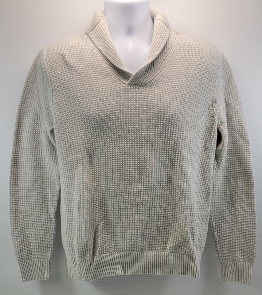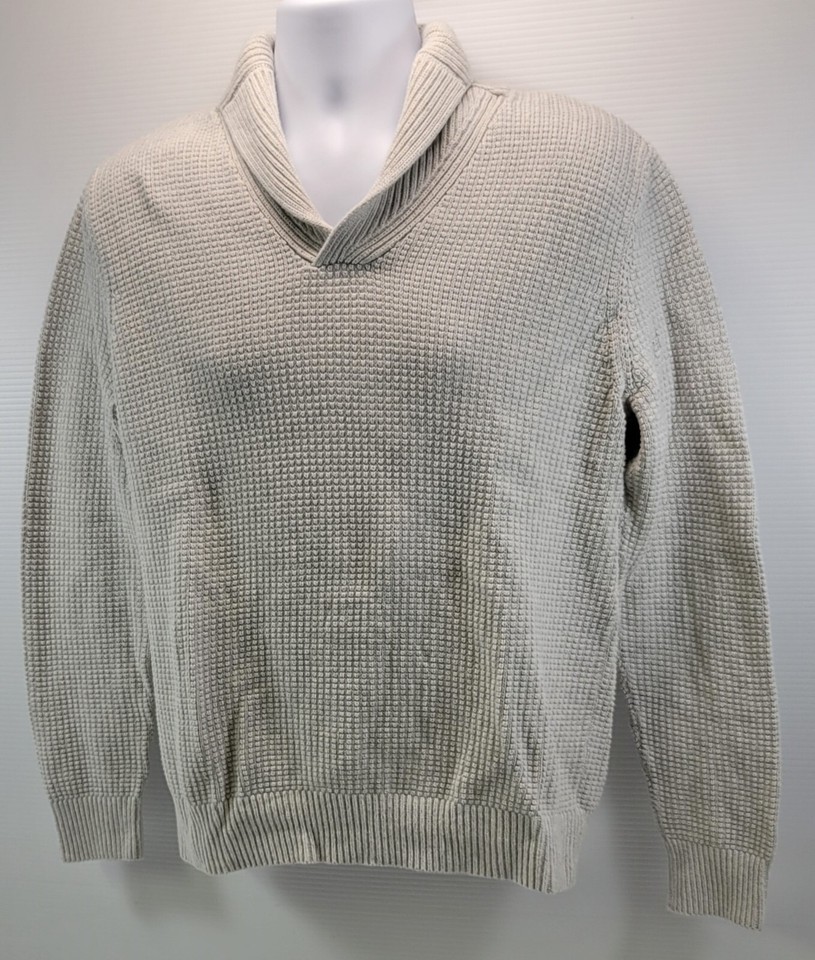 V) EXPRESS Men Waffle Knit Pullover Long Sleeve Sweater Shirt Top Cotton Large