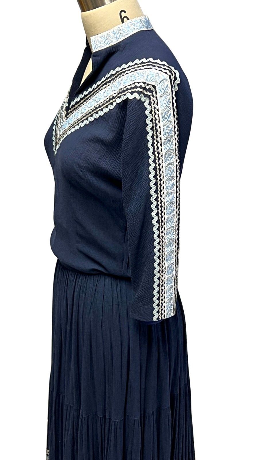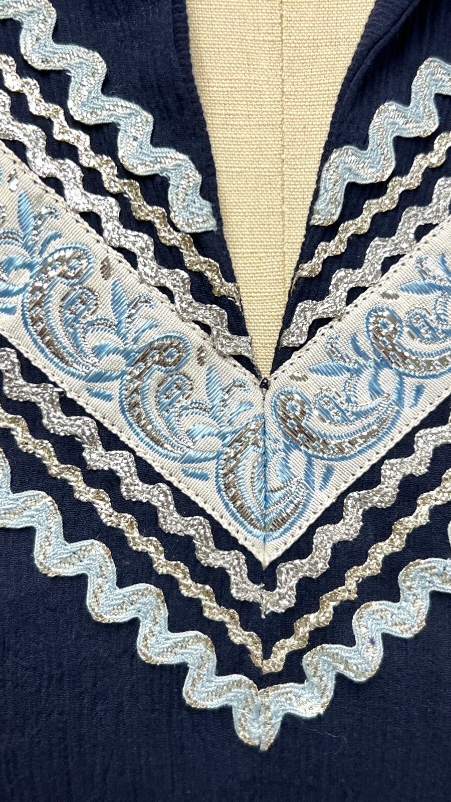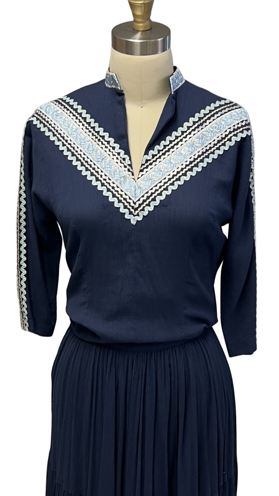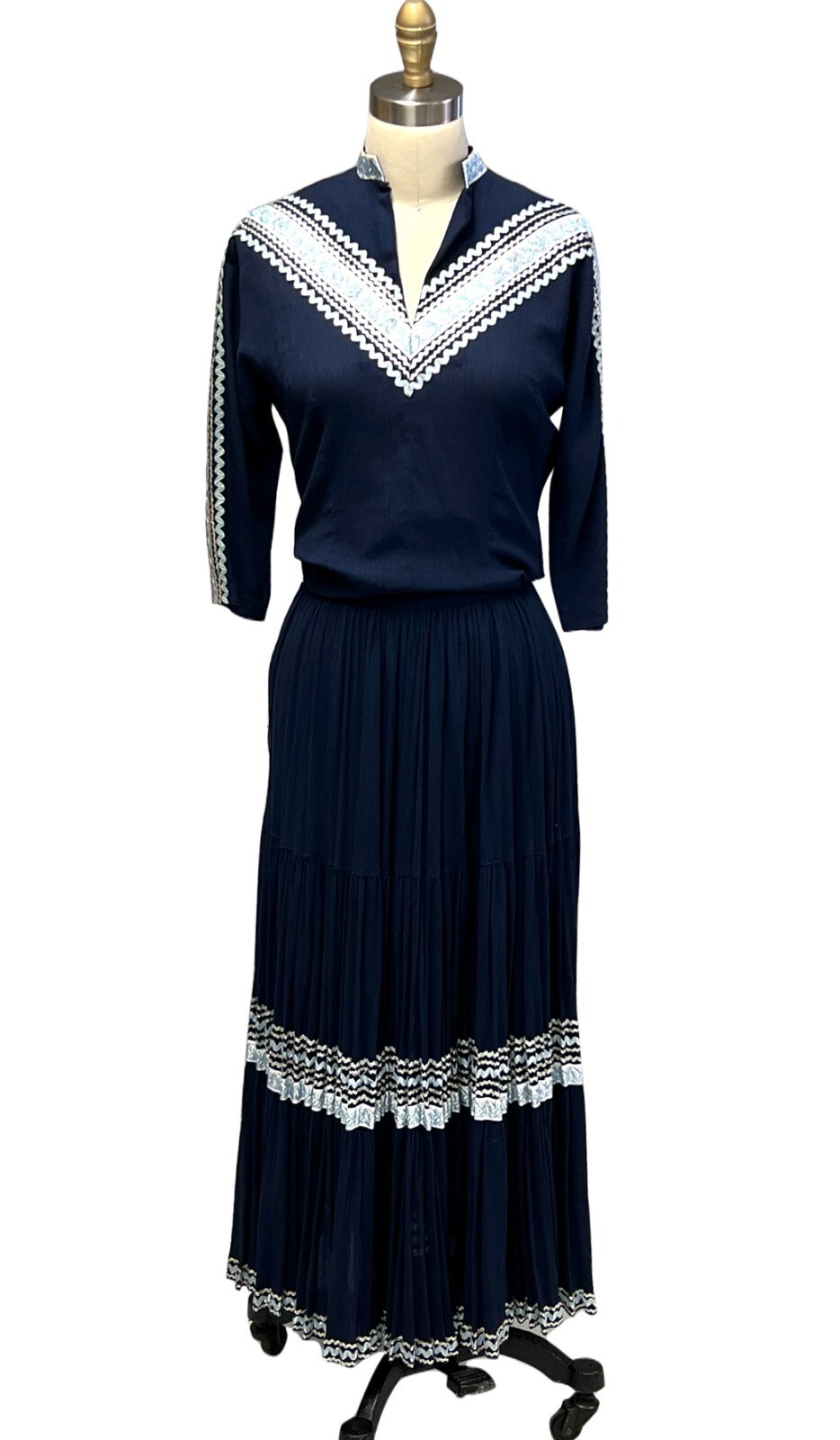 VTG 1950s Chiquita (Tucson, Arizona) 2 piece Patio Dress Navy w Silver Blue Rick Rack Sz M