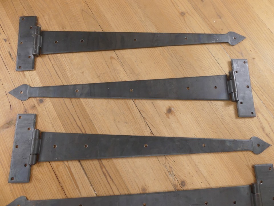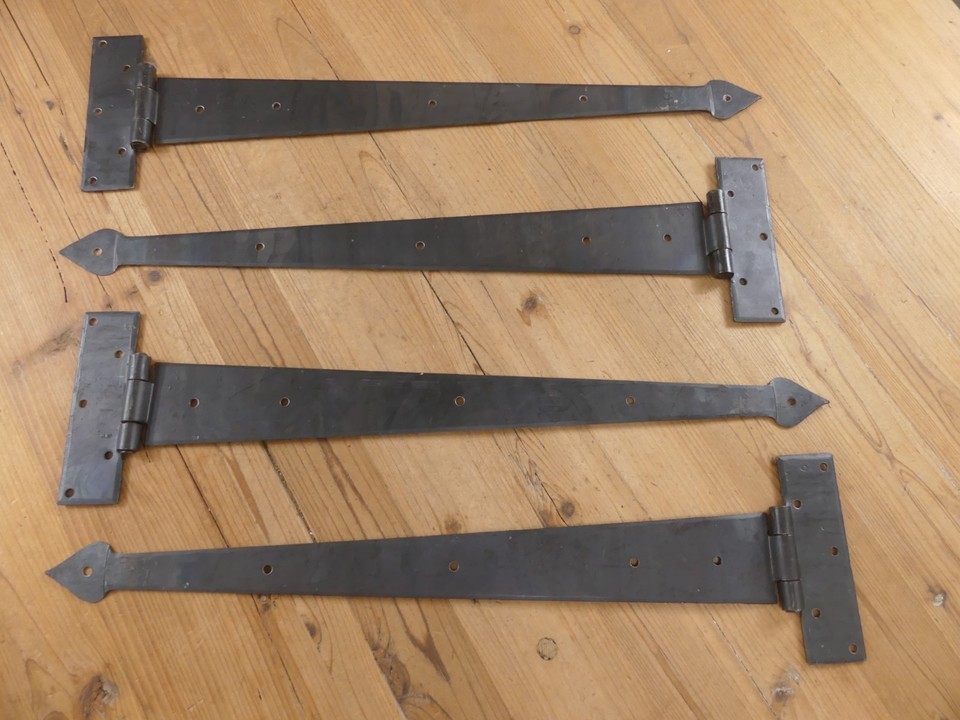 4 LARGE Strap T Hinges 24" Long Tee Hand Forged Gate Barn Rustic Medieval Iron
