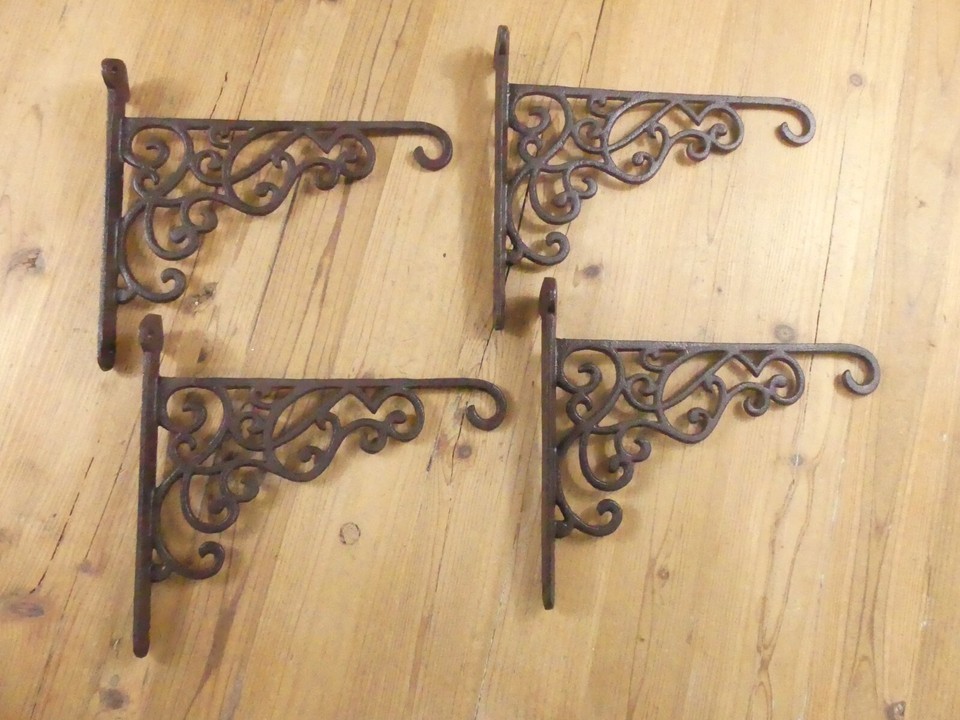 4 LARGE Cast Iron Victorian Style Plant Hooks Garden Hanger Wall Barn Fence Hook