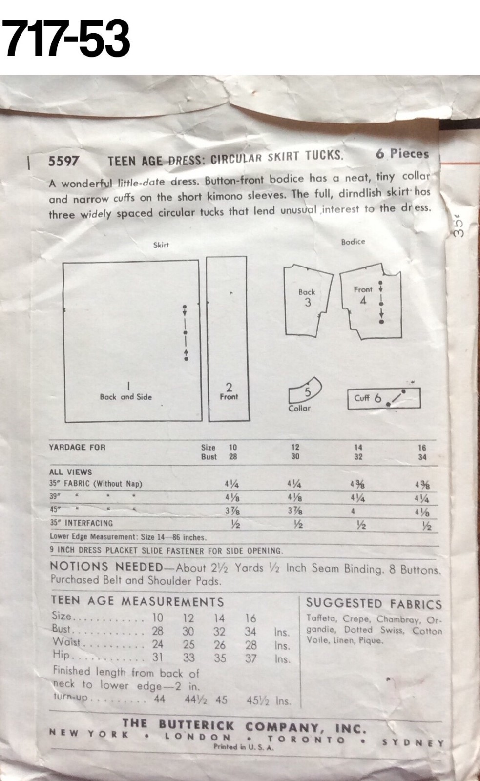 Vintage Pattern Butterick #5597 with instructions included