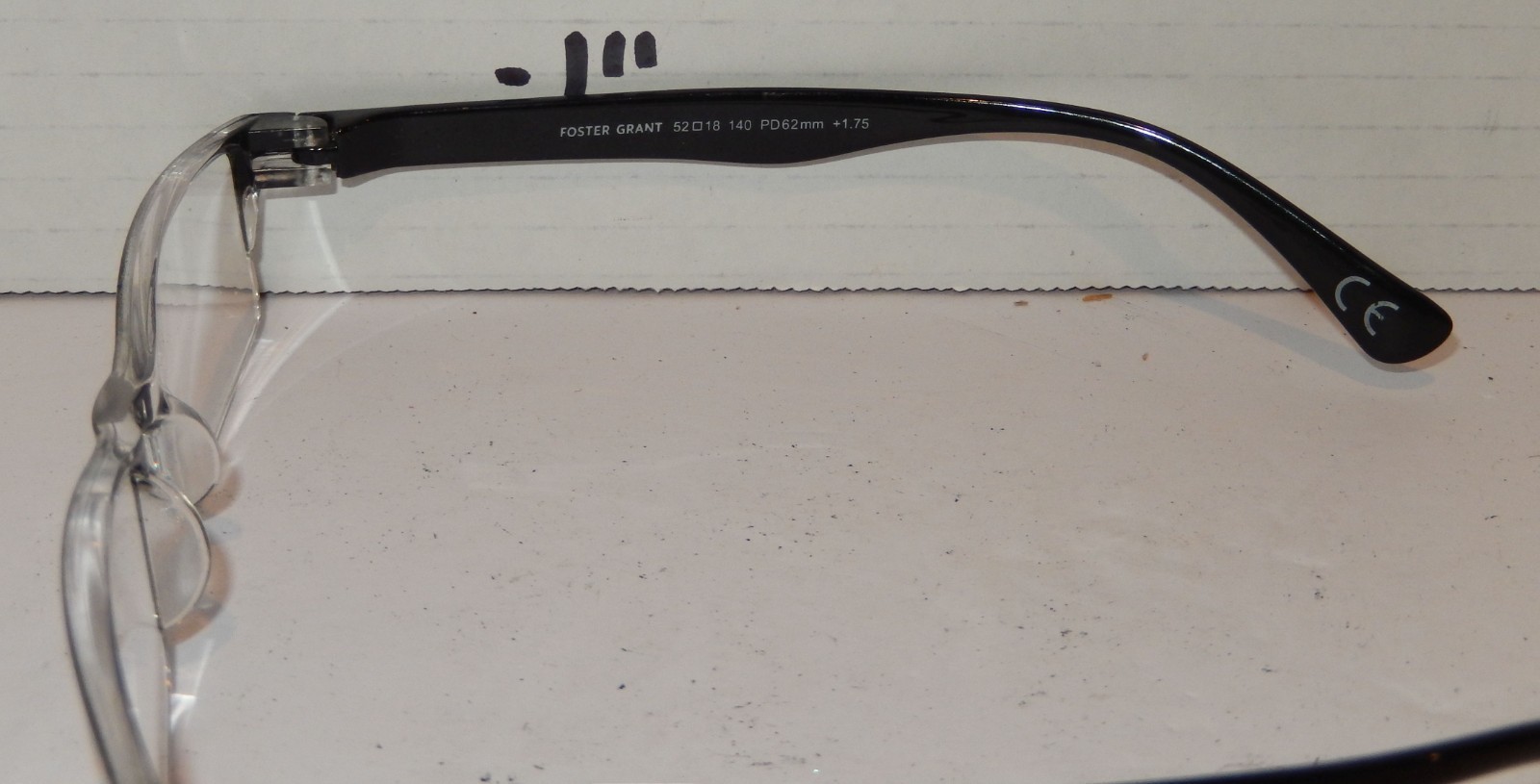 Up for sale is an Foster Grant Pete BLK Reading Glasses +1.75 Rectangular Black Frame 52-18-140.