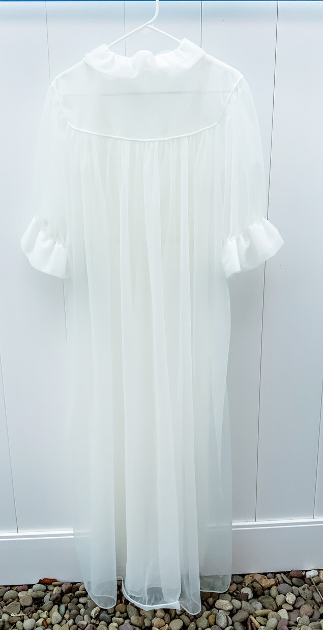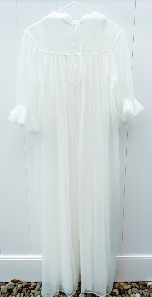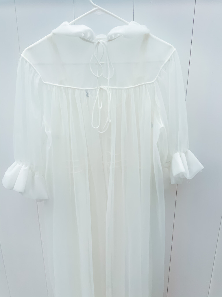 Vtg 50s Peignoir White Sheer Nylon Tricot Chiffon Bridal SZ 34 M/L Honeymoon!