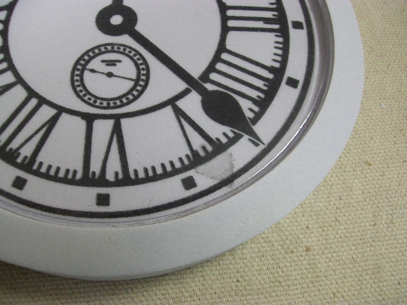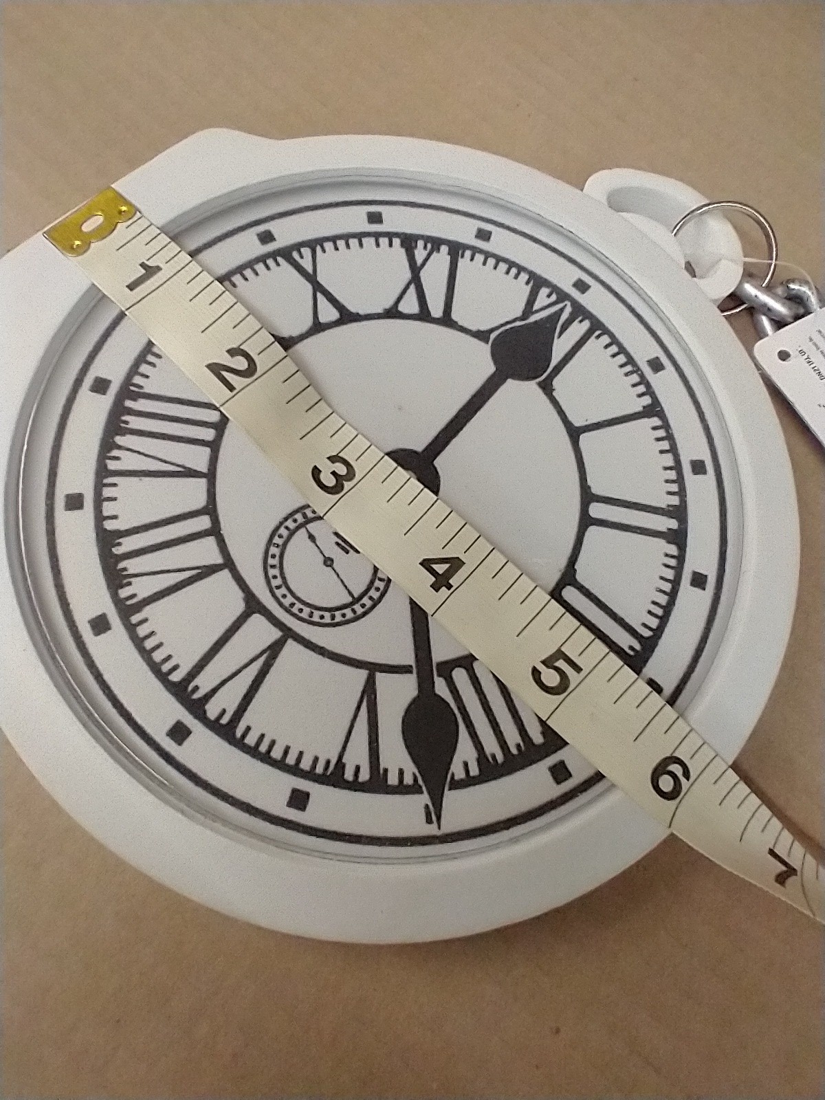 Oversized handheld Fake Pocketwatch. Made of lightweight foam with a plastic cover over face. The clock face is printed on the foam. Could be used with many costumes.