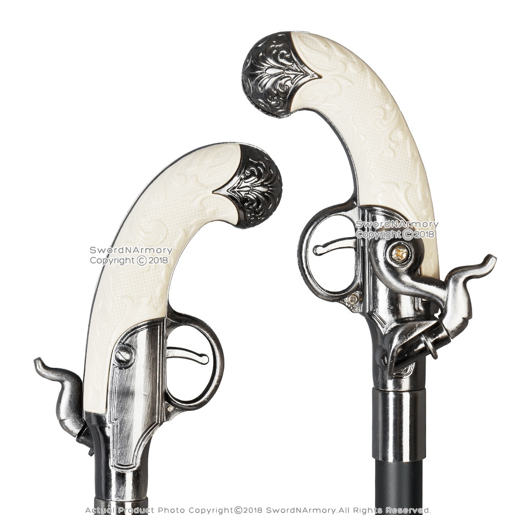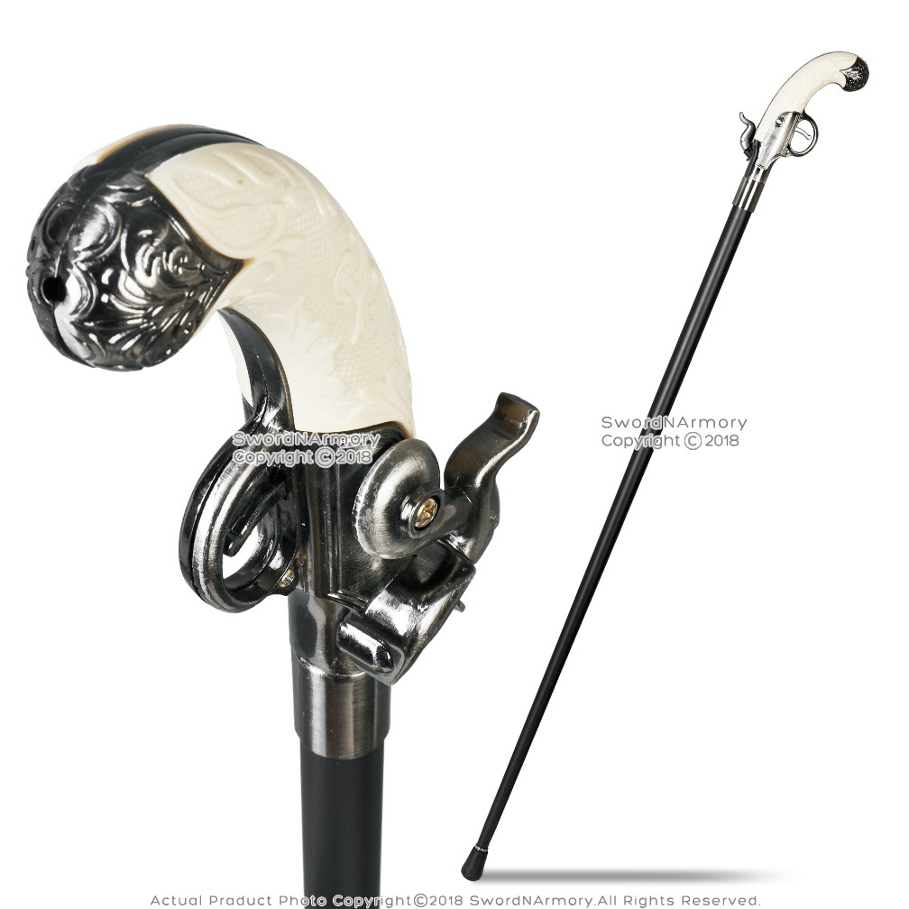 37" Flintlock Pistol Grip Style Handle Fantasy Cane Gentleman's Walking Stick