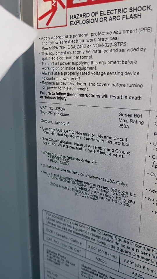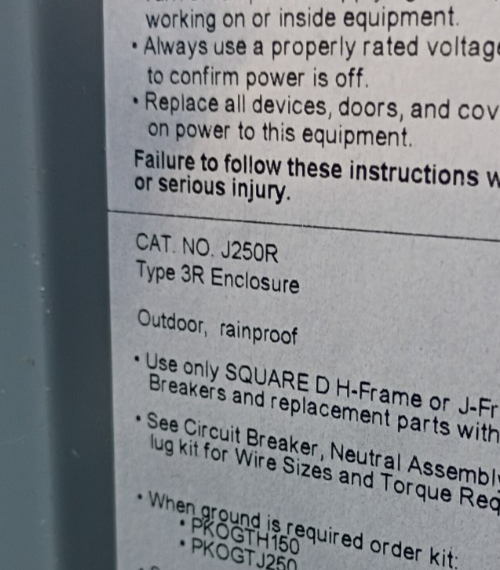 Square D J250R Circuit Breaker Enclosure NEMA 3R