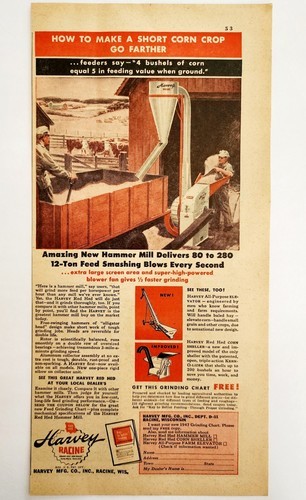 1947 Harvey Hammer Mill Corn Grinder Advertisement Farming Agriculture DWNN18