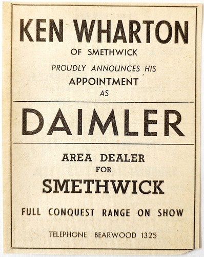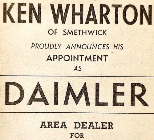 1954 Ken Wharton Smethwick Daimler Car Dealer Advertisement Automobilia E89G3