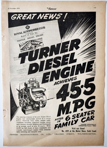 1954 RAC Turner Diesel Engine Import Advertisement Autocar Automobilia DWPP10