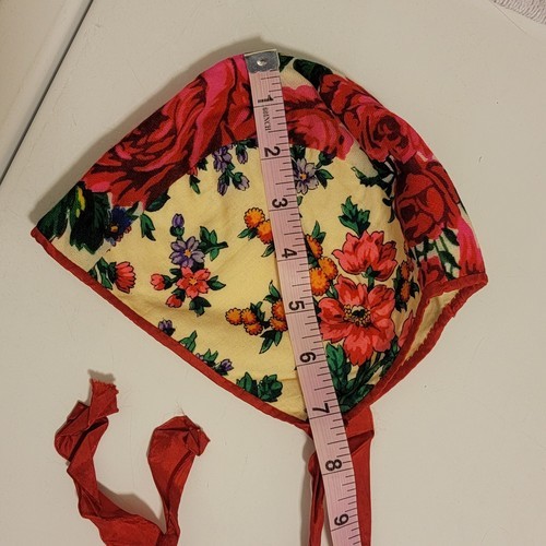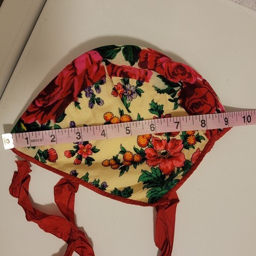 Vintage Child's Costume Floral Folk Art Swedish Bonnet Hat 1950s Ribbon Tie Neck