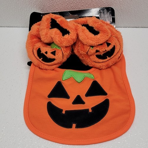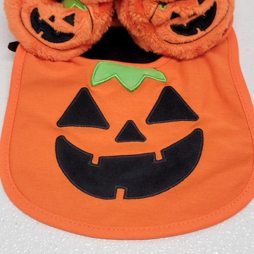 Pumpkin Baby Bib & Booties Set Halloween Pumpkin Jack O' Lantern Set - NEW