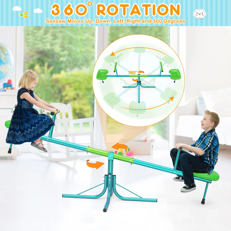 Kids Seesaw, Spinning Teeter Totter, 220Lbs Capacity Kids Outdoor Playground Equ