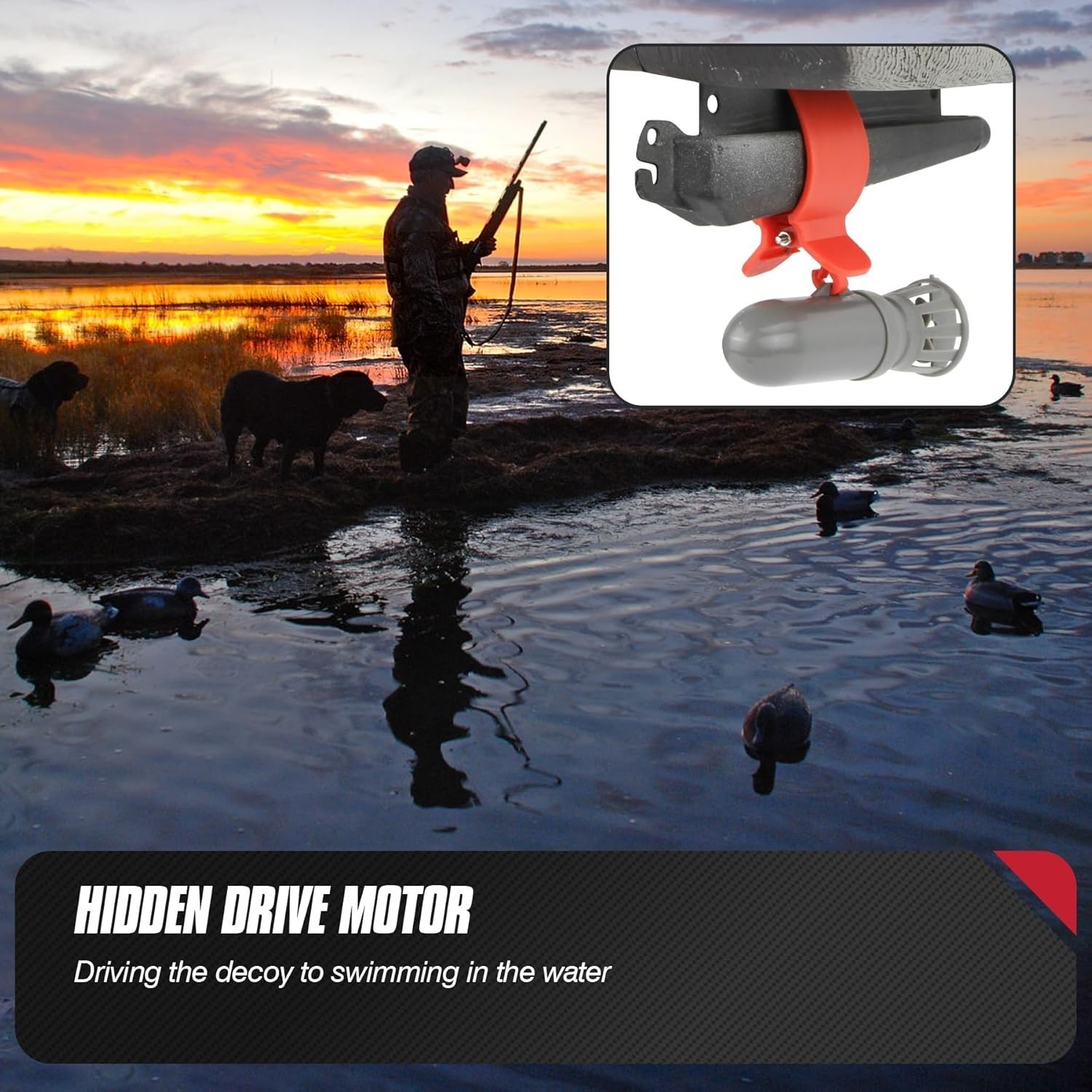 drive motor is suspended from the bottom of the waterfowl decoy. Driving the decoy to swimming in the water.