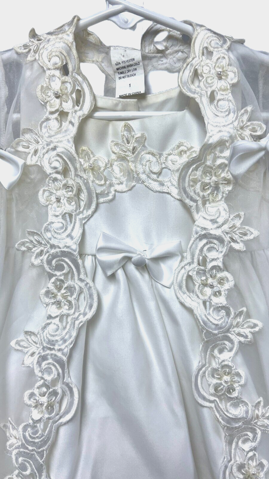 Vintage 1950s Angels NY Girl Party Wedding Dress w Sheer Jacket Sz 1 Bows Beads