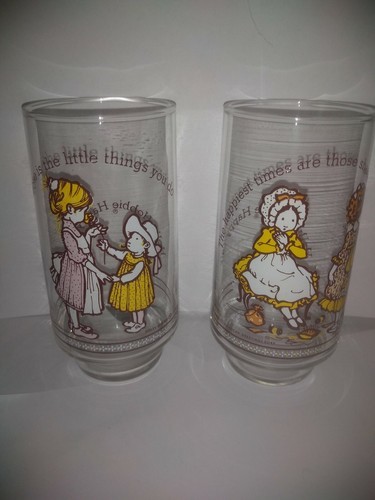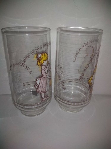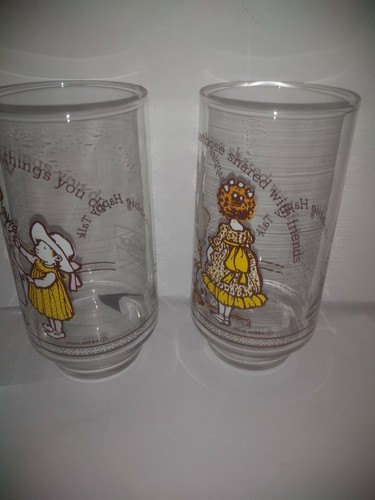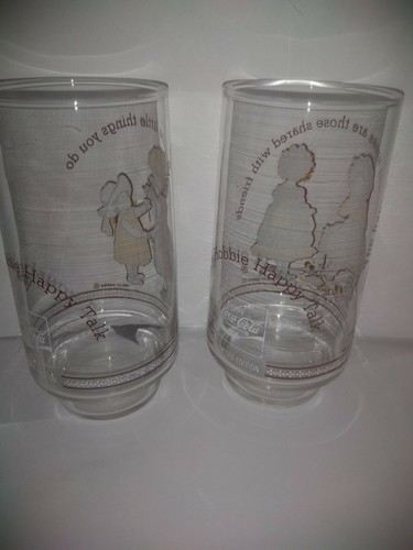 2 Vtg Genuine Coca-Cola Holly Hobbie Happy Talk Friendship Coke Glasses/Tumblers