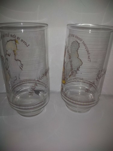 2 Vintage Genuine Coca-Cola Holly Hobbie Happy Talk Friendship Coke Glasses/Tumblers. One glass says The happiest times are those shared with friends. The other glass says Love is the little things you do. Excellent, vintage condition.
