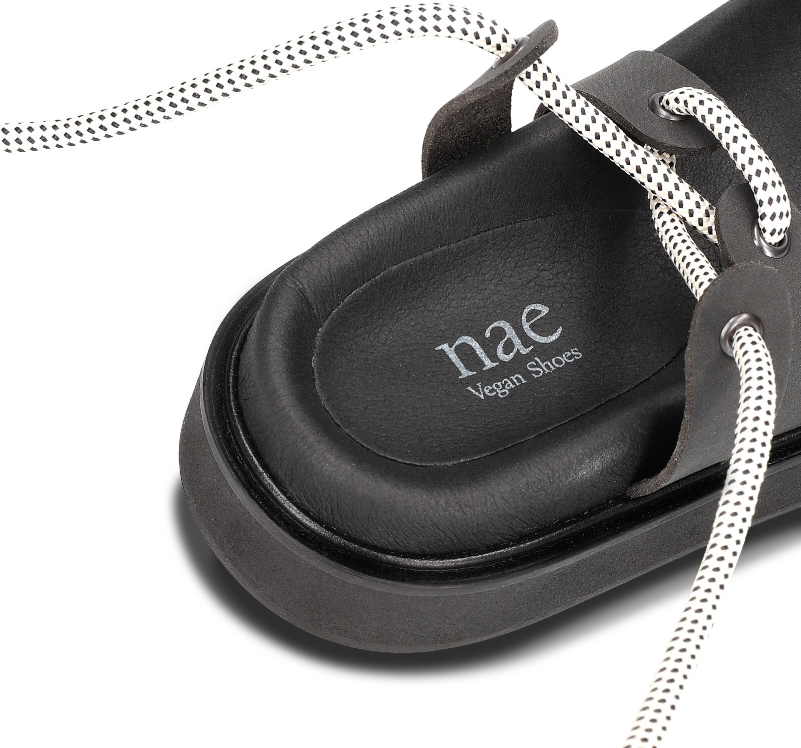 Sie online das Modell Acacia Black ein, die flachen Sandaletten mit
