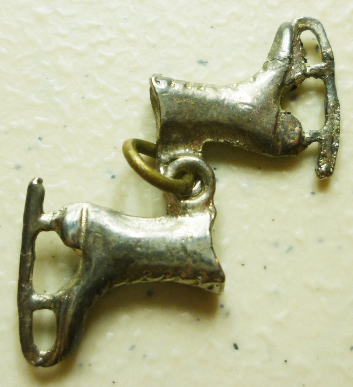 DOLLHOUSE MINIATURE WALL HANGING METAL FIGURE ICE SKATES SET